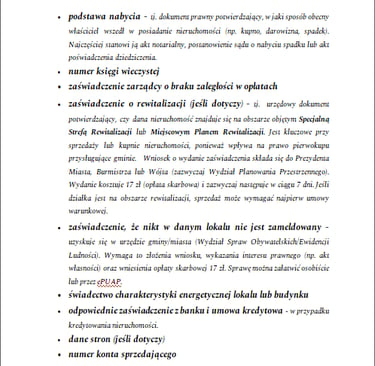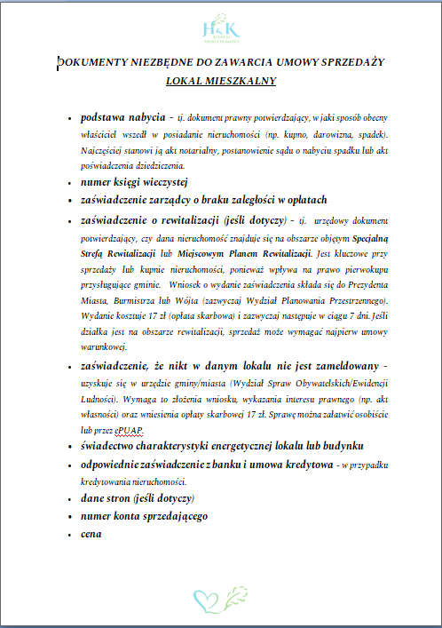 DOKUMENTY NIEZBĘDNE DO ZAWARCIA UMOWY SPRZEDAŻY - LOKAL MIESZKALNY