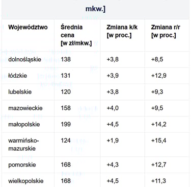 Ceny działek budowlanych w województwach