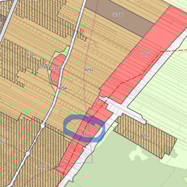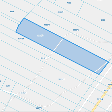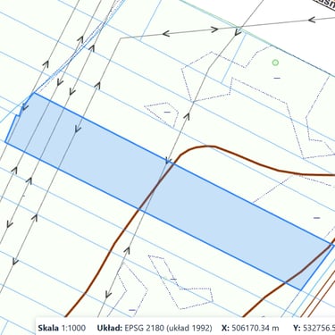 Nieruchomość położona przy drodze nr 60, objęta jest MPZP (oznaczenie 92MN wskazuje na możliwość budowy domu jednorodzinnego na części nieruchomości). Działka przylega dłuższym bokiem do działki o numerze 5316/1, co daje możliwość powiększenia nieruchomości.
