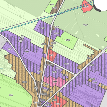 7SP tj. strefa gospodarcza: teren usług, teren zieleni naturalnej – maksymalny udział powierzchni zabudowy to 50%; maksymalna wysokość zabudowy to 15 metrów; minimalny udział powierzchni biologicznie czynnej 20%.