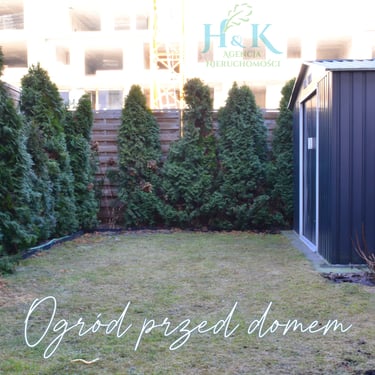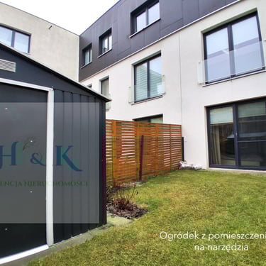 Ogródki są zadbane, a dodatkowym udogodnieniem jest mały budynek gospodarczy.