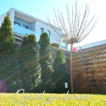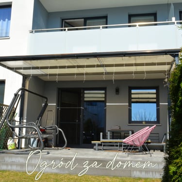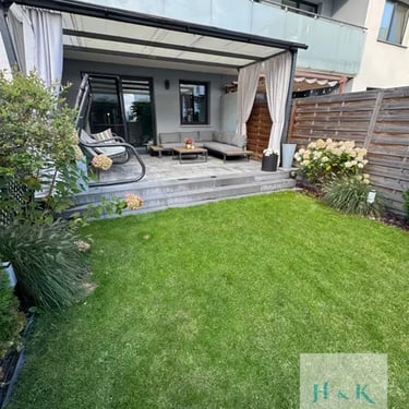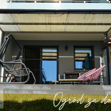 Do mieszkania przynależą dwa ogródki, każdy o powierzchni ok. 50 m². To rzadko spotykane rozwiązanie daje ogromne możliwości aranżacyjne — jeden może służyć do porannej kawy i relaksu, drugi do grilla, zabawy z dziećmi, przestrzeni dla psa albo własnego warzywnika.
