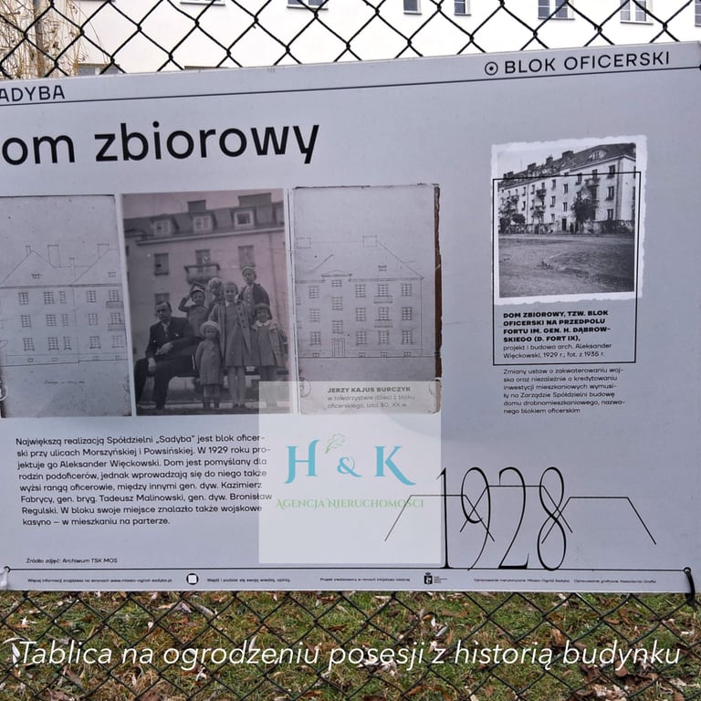 Budynek powstał w roku 1929 jako część osiedla oficerskiego przy forcie na Sadybie. Choć z założenia przeznaczony był dla rodzin podoficerów, mieszkali w nim rodziny gen. dyw. Kazimierza Fabrycego, gen. bryg. Tadeusza Malinowskiego, czy gen. dyw. Bronisława Regulskiego.